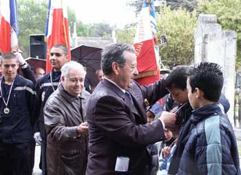 ![]() Pendant la cérémonie les enfants des Harkis reçoivent une médaille du Mémorial National d'Aix-en-Provence. |