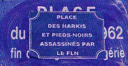 En effet, le 7 décembre 2012, les habitants du village de Carnoules ont découvert apposé sur la plaque commémorative de la " place 19 mars fin de la guerre d'Algérie", une nouvelle appellation qui laisse apparaître que certaines blessures restent encore bien vivaces dans l'esprit des Français d'Algérie et des Harkis. |