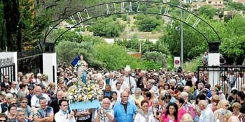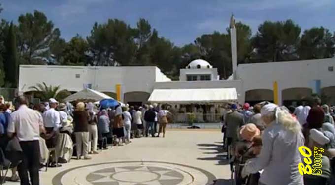 Il y avait aussi, le matin, une radio et TV pieds-noirs et harkis, qui se plaint de n’être pas assez soutenue par la communauté, et des chanteurs. La procession, de l’église au sanctuaire, a débuté à 14 h 30 précises, une marée humaine récitant le Notre Père et le Je vous salue Marie, l’archevêque de Montpellier et sa crosse, le sanctuaire déjà envahi pour l’office de plein air avant même que n’y parvienne le cortège accompagnant la vierge chérie hissée sur un lit de fleurs, les gens se levant et s’inclinant sur son passage, les cloches à toutes volées à son arrivée, puis la chorale andalouse en costume interprétant un thème un peu nostalgique le temps que tous prennent place pour rendre grâce.