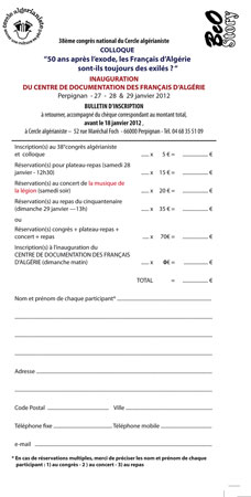 8h45 - Ouverture du 38ème congrès national du Cercle algérianiste et du colloque : 50 ans après l'exode, les Français d'Algérie sont-ils toujours des exilés ?