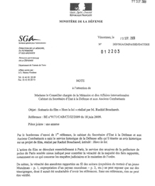 À l'attention de Madame le Conseiller chargée de la Mémoire et des Affaires internationales Cabinet du Secrétaire d'Etat à la Défense et aux Anciens Combattants