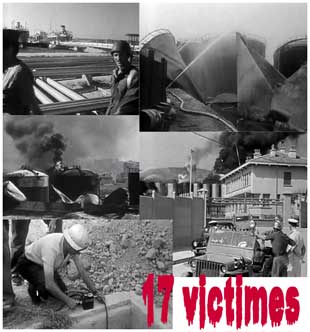 Des fellaghas allument, à 21 h, plusieurs foyers d’incendie dans  les forêts de l’Estérel de manière à ce que plusieurs équipes de pompiers  chargées de combattre le sinistre s’éloignent de Marseille. A 3h15, l’explosion  fait sauter les deux réservoirs et secoue tout le quartier de l’Estaque. Un  incendie qui éclaire tout le ciel de Marseille, ravage sept des quatorze bacs.  Nouvelle explosion à 8h45 après que l’on eut fait évacuer en toute hâte les  habitants des quartiers en danger, puis le soir, à 20h20, une formidable  explosion qui détruit toutes les installations qui avaient jusque-là échappé  aux destructions ".