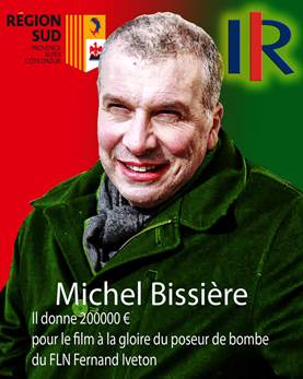 Le rapporteur du financement du film « de nos frères blessés » pour la gloire du terroriste FLN poseur de bombe Fernand Iveton un certain nauséabond Michel Bissière le collecteur de fonds de la région PACA au profit du film F.L.N