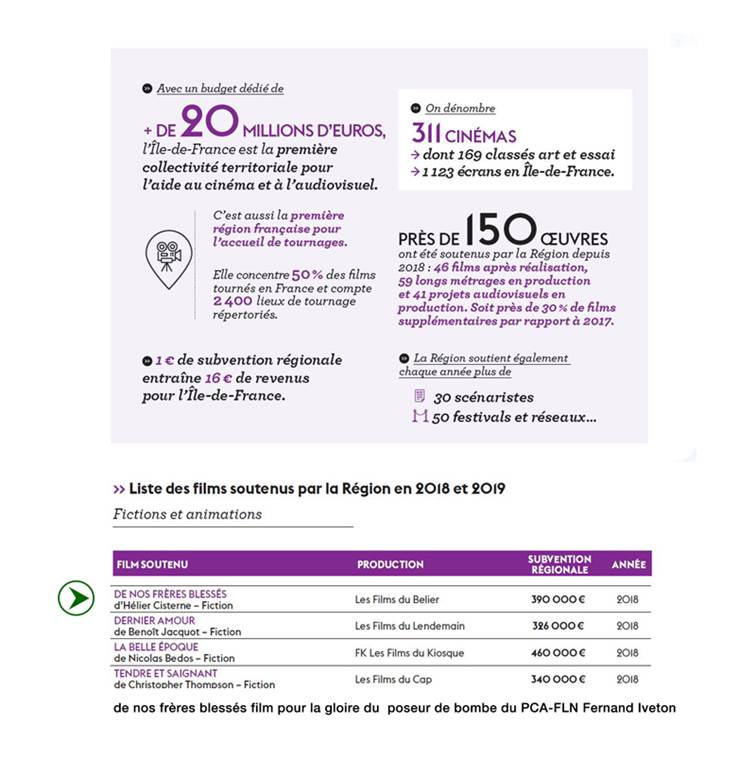 La Commission du film Ile-de-France collecteur de fonds pour un film à la gloire du poseur de bombe Fernand Iveton à Alger en 1956 pendant la bataille d’Alger.