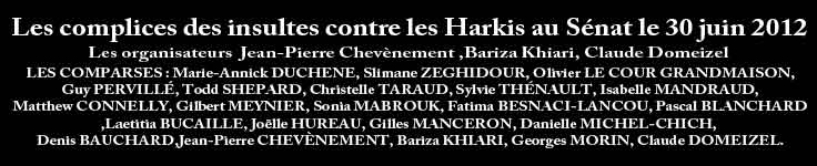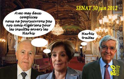 Dans ce lieu où se votent les lois censées protéger les citoyens, les Harkis furent vilipendés, insultés et qualifiés de « nazis... » et autres qualificatifs que vos services ont certainement dû vous rapporter, sans susciter la moindre réaction officielle du Sénat ou même d’un quelconque sénateur !