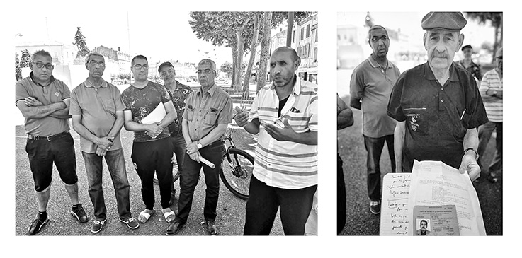 Au milieu du groupe, « Miloud » s’avance, tend une feuille et une carte verte.