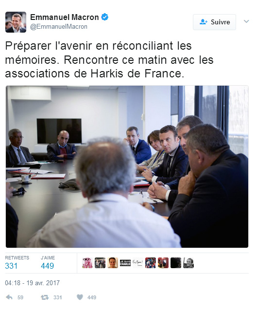 les harkis écoutent la promesse électorale du candidat Emmanuel Macron le 19 avril 2017