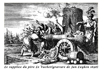 Aux bombes de la flotte française, les assiégés algérois répondirent par le massacre des chrétiens et d'abord du consul de France : le père Jean Le Vacher, qui périt à la bouche d'un canon avec seize autres Français.