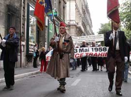 Depuis le Vieux-Port de Marseille, les manifestants (Rapatriés d'Algérie, Harkis, fils de Harkis et anciens combattants d'Algérie) ont défilé en portant des banderoles sur lesquelles on pouvait lire: "Alger. 13 mai 1958. Espérance trahie" ou encore " Je vous ai compris: 50 ans de mensonges".