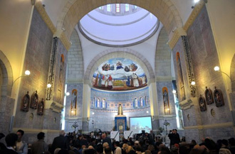 Tout en haut de la colline de Saint Eugene, à Alger, surplombant la Méditerranée, la basilique Notre-Dame-d'Afrique a rassemblé, lundi 13 décembre 2010, une petite foule inhabituelle ambassadeurs européens, élus marseillais, se sont retrouvés sur les mêmes bancs pour célébrer la restauration, après trois années de travaux, encore symbole de la présence française et devenu aujourd'hui l'un des sites les plus visités de la capitale algérienne. "C'est un chef-d'oeuvre, s'est félicité l'archevêque d'Alger, le Jordanien Ghaleb Bader, un chef-d'oeuvre d'entente et de collaboration entre les autorités civiles et l'Eglise, entre les religions et les peuples des deux rives de la Méditerranée." Chacun y a mis de sa poche pour financer les 5 millions d'euros nécessaires au projet. L'Etat algérien, représenté par le ministre des affaires religieuses, Bouabdallah Ghlamallah, le ministre d'Etat, par le secrétaire général du FLN, Abdelaziz Belkhadem, et par le wali (préfet) d'Alger, a dépensé 560 000 euros ; la ville de Marseille, le département des Bouches-du-Rhône et la région Provence-Alpes-Côte d'Azur, en présence de leurs dirigeants, Jean-Claude Gaudin, Jean-Noël Guérini et Michel Vauzelles, se sont acquittés de 360 000 euros chacun ; l'Union européenne a pris à sa charge 1 million d'euros ; des entreprises algériennes et françaises ont complété en versant leur obole.