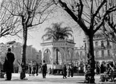 À son apogée, avant la catastrophe de 1962, Blida est la capitale de la Mitidja avec 70 000 habitants. Son climat sain bien aéré au pied de l'Atlas Tellien, attire les visiteurs algérois. Les "Autocars blidéens" rouge vif stationnés dans d'immenses hangars, puis la micheline desservent le centre ville. Projetée dès 1920, réalisée en 1947, elle fonctionna jusqu'au 30 mai 1959 : le trajet était devenu dangereux à cause des embuscades, malgré la présence d'un wagon de marchandise aménagé en poste de tir pour une escouade des Unités territoriales. Au centre ville, sur la place d'armes, l'ineffable kiosque à musique de style mauresque trône sous son immense palmier et au milieu de la double file de platanes. |